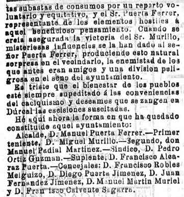 9 de julio de 1891. Se constituye el ayuntamiento de Dúrcal