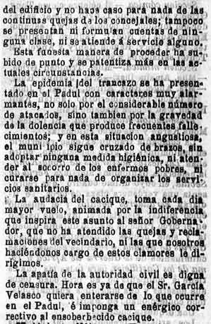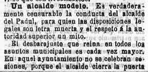 27 de enero de 1892. Fuertes críticas al alcalde del Padul.
