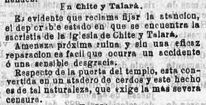 19 de febrero de 1892. La iglesia de Chite y Talará en total