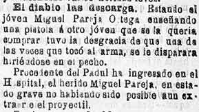 12 de junio de 1892. Herido por una pistola un joven de Padul