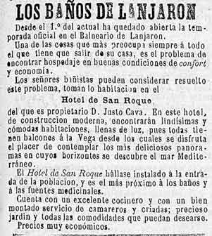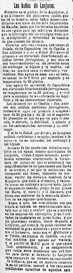 2 de junio de 1892. Abiertos los baños de Lanjarón (Anuncio)