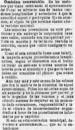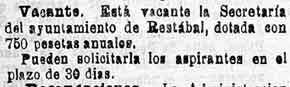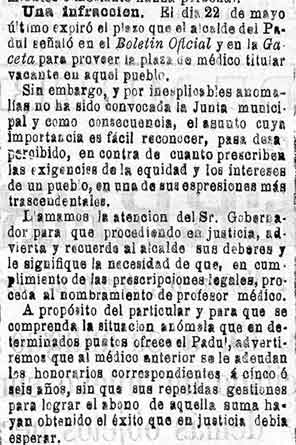 4 de junio de 1892. El alcalde de Padul no convoca la plaza