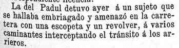 7 de abril de 1893. Detención en Padul a un hombre embriagado