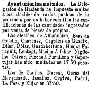 23 de diciembre de 1894. Multados Albuñuelas, Nigüelas,