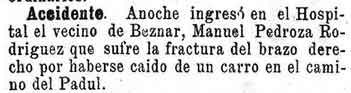 18 de enero de 1894. Accidente de un vecino de Béznar en el