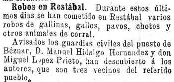 25 de enero de 1894. Robos en los corrales de Restábal