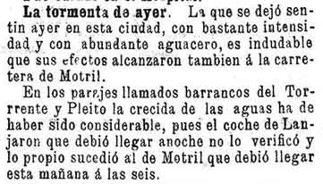 11 de septiembre de 1894. Fuertes tormentas cortan la
