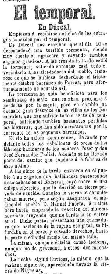 12 de septiembre de 1894. Tormenta en Dúrcal. La gente sale a
