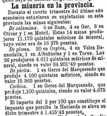 6 de septiembre de 1894. Minería en la provincia: 1 de plomo