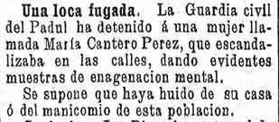 16 de mayo de 1895. Se detiene a una "loca" en el Padul