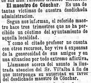 23 de mayo de 1895. El maestro de Cónchar lleva tres meses