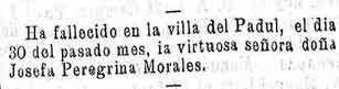 5 de mayo de 1895. Fallece en Padul Josefa Peregrina Morales