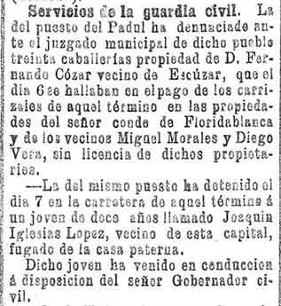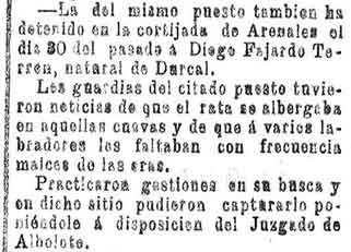 4 de octubre de 1896. Capturado "El rata" de Dúrcal
