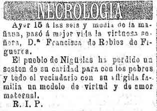16 de octubre de 1896. Muere Doña Francisca de Robles de