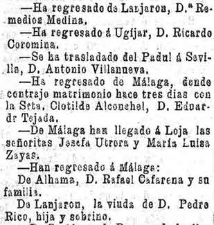 9 de octubre de 1896. Visitantes de Lanjarón. Viajero de