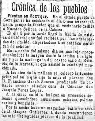9 de octubre de 1896. Fiestas de la Virgen de la Cabeza en