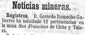 28 de marzo de 1897. Minas de Chite y Talará