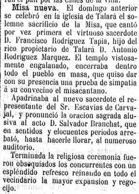 13 de mayo de 1897. Canta misa el hijo de Don Antonio