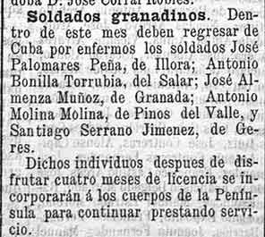 26 de mayo de 1897. Soldado de Pinos del Valle regresa de
