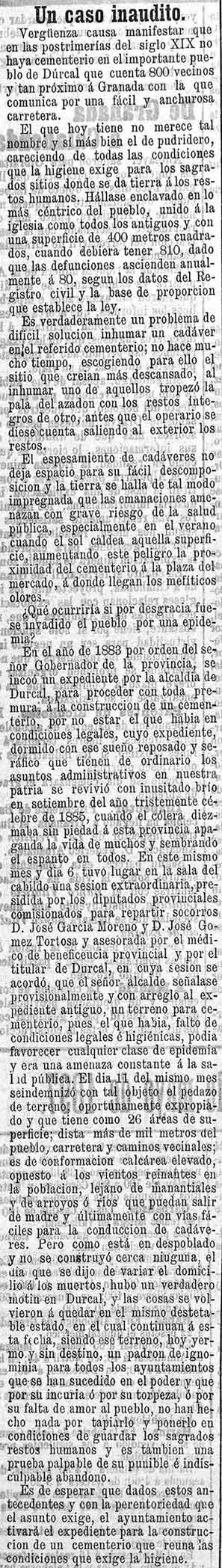 cementerio de Dúrcal. En 1883 se abre expediente para construir uno nuevo.
