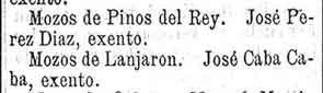 5 de mayo de 1897. Quintos de Pinos del Rey y Lanjarón