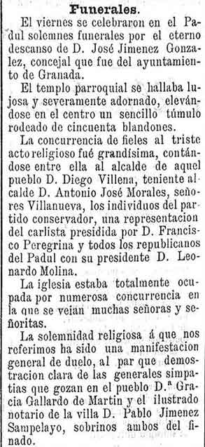 9 de mayo de 1897. Muere D. José Jiménez González en Padul