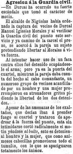 19 de octubre de 1897. Agresión a la guardia civil de Dúrcal
