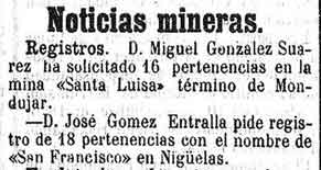 1 de octubre de 1897. Minas de Mondújar, Nigüelas y