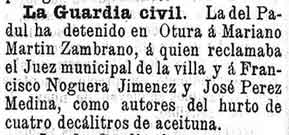 27 de octubre de 1897. Detención en Padul por robar aceituna
