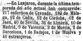 5 de octubre de 1897. Visitantes de Lanjarón este año
