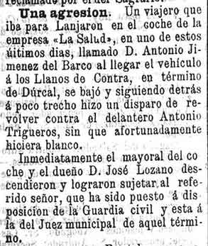 7 de octubre de 1897. Un viajero hace un disparo, en Dúrcal,