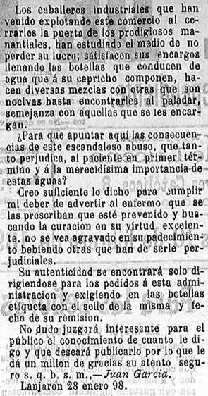 10 de febrero de 1898. Fraude en la venta de aguas de