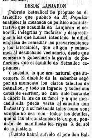 13 de febrero de 1898. Quejas contra la administración del