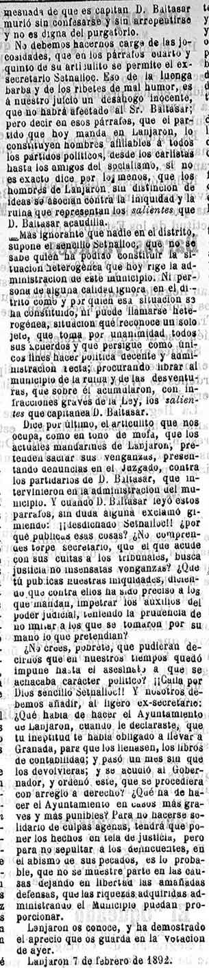 13 de febrero de 1898. Viajero de Lanjarón