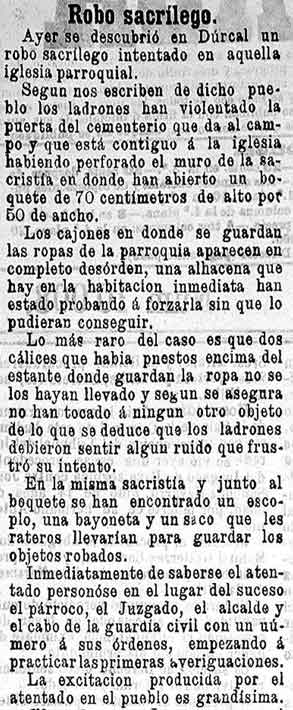 6 de febrero de 1898. Intento de robo en la iglesia de Dúrcal