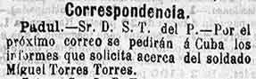 8 de febrero de 1898. Soldado de Padul en Cuba