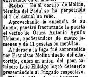 11 de julio de 1898. Robo en el cortijo de Molina de Padul