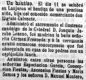 15 de julio de 1898. Bautizo de la hija de un comerciante en