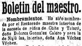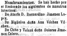 8 de julio de 1898. Maestras de Chite y Talará, y Nigüelas