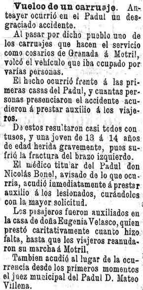 17 de julio de 1898. Vuelca en las calles del Padul un coche