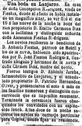 22 de julio de 1898. Boda en Lanjarón de un rico propietario
