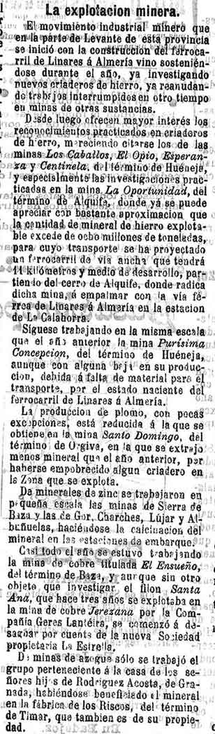 5 de julio de 1898. Minas de Lanjarón, Tablate y Béznar