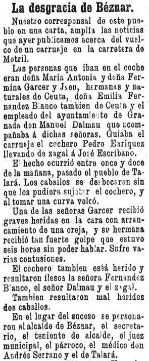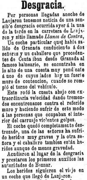 15 de septiembre de 1898. El accidente del coche de Lanjarón