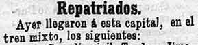 guerra de Cuba y empiezan a volver los soldados: Vuelven soldados de Ízbor y