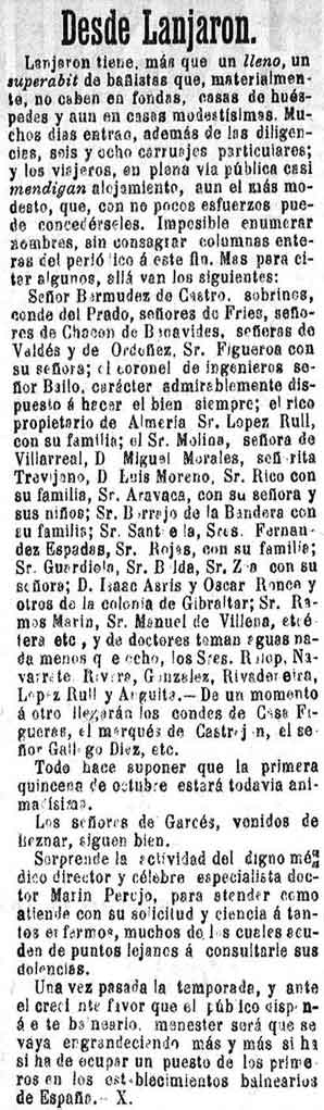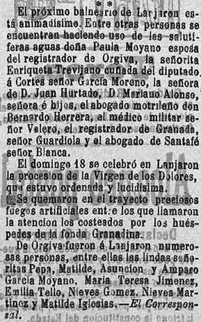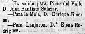 2 de septiembre de 1898. Viajeros de Pinos del Rey y Lanjarón