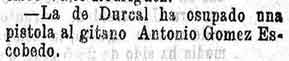 23 de septiembre de 1898. Ocupada una pistola en Dúrcal