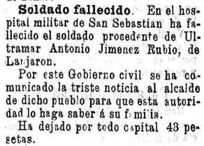 25 de septiembre de 1898. Fallece un soldado de Lanjarón que