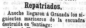 13 de septiembre de 1898. Vuelven soldados de Pinos del Rey
