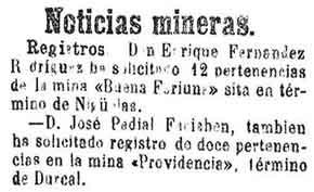 29 de septiembre de 1898. Minas de Nigüelas y Dúrcal