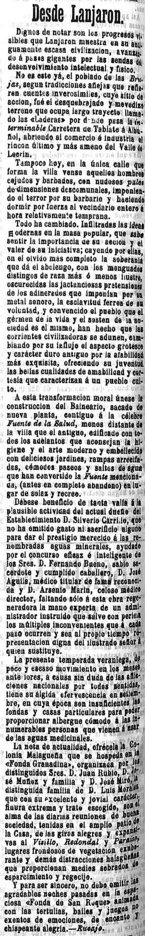 4 de septiembre de 1898. Los cambios en Lanjarón